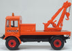 All these plus points made it an ideal vehicle for Crouch Recovery and here we see it in 1:76 scale miniature.  Decorated in the signature orange colour scheme with black and white graphics, the flat fronted cab features its distinctive curved roof with the Crouch’s name printed on it, also repeated on the cab doors. A beacon has been added to the cab roof above the windscreen. The white lettering on the front of the vehicle details the 24 hour service – Recovery Engineers. To the rear, the flatbed trailer has a recovery winch complete with tow hook fixed to the brown planking and the huge wheels with orange inserts sit on a black chassis.  The vehicle is registered Q492 DNR, indicating it is a specially derived vehicle.  Whatever its previous life, nothing can detract from its extremely powerful capabilities as part of the Crouch recovery fleet!
