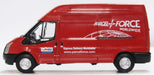 Our up to date Ford Transit Mk5 is a popular vehicle in real life with Parcelforce, which is why we have chosen their signature livery of bright red and white, registered AO56 HNZ, on this long wheelbase high roof version. The graphics include the reverse printed website address across the front the bonnet and the 'GLS Network Partner' lettering on the cabin doors.